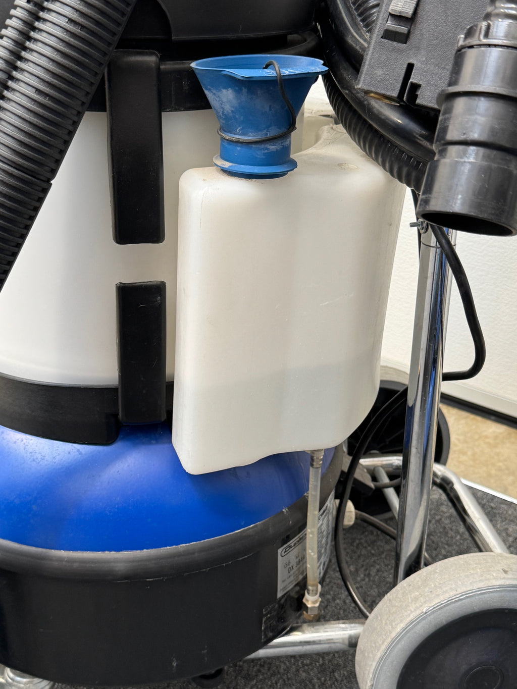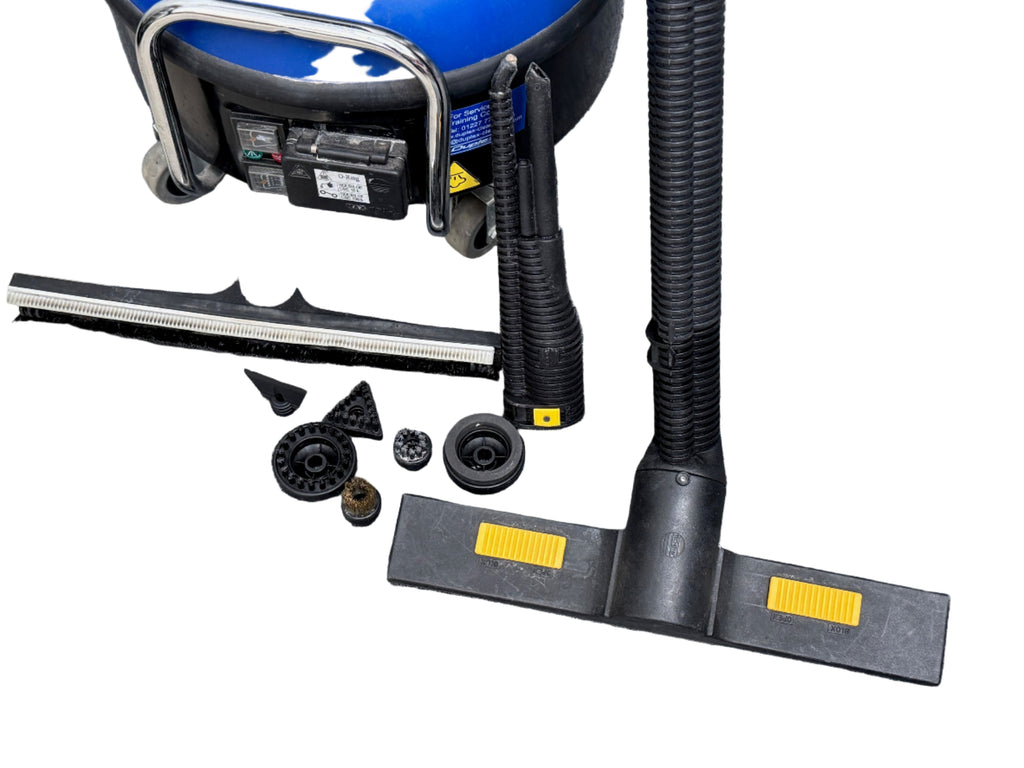 This is a combined steam and vacuum cleaner, offering powerful steam for cleaning and sanitising surfaces and an integral vacuum to remove dirt and liquids. It is a professional cleaning machine, typically used in commercial or clinical environments.